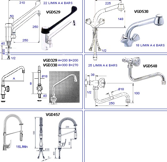 VGD174 | Robinet melangeur monotrou 1/2ff 21l/min 4 bars bec 250mm | ||